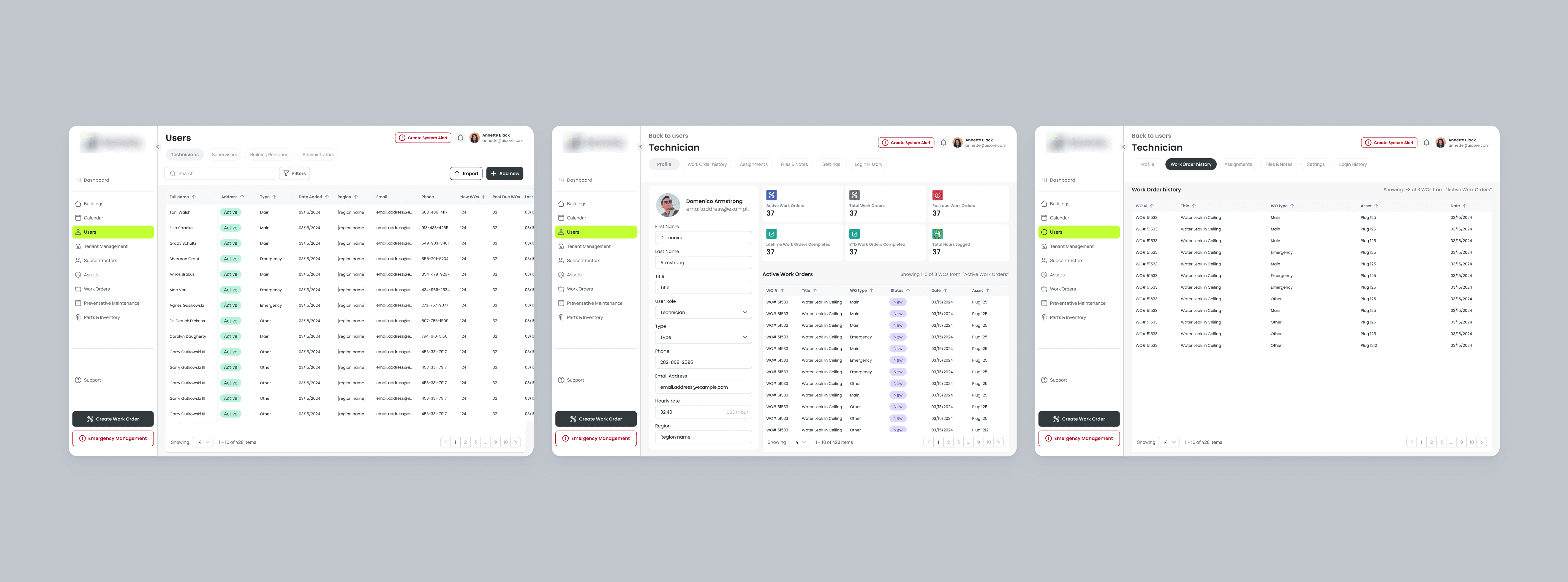 For the mobile app, I focused on core flows for technicians: