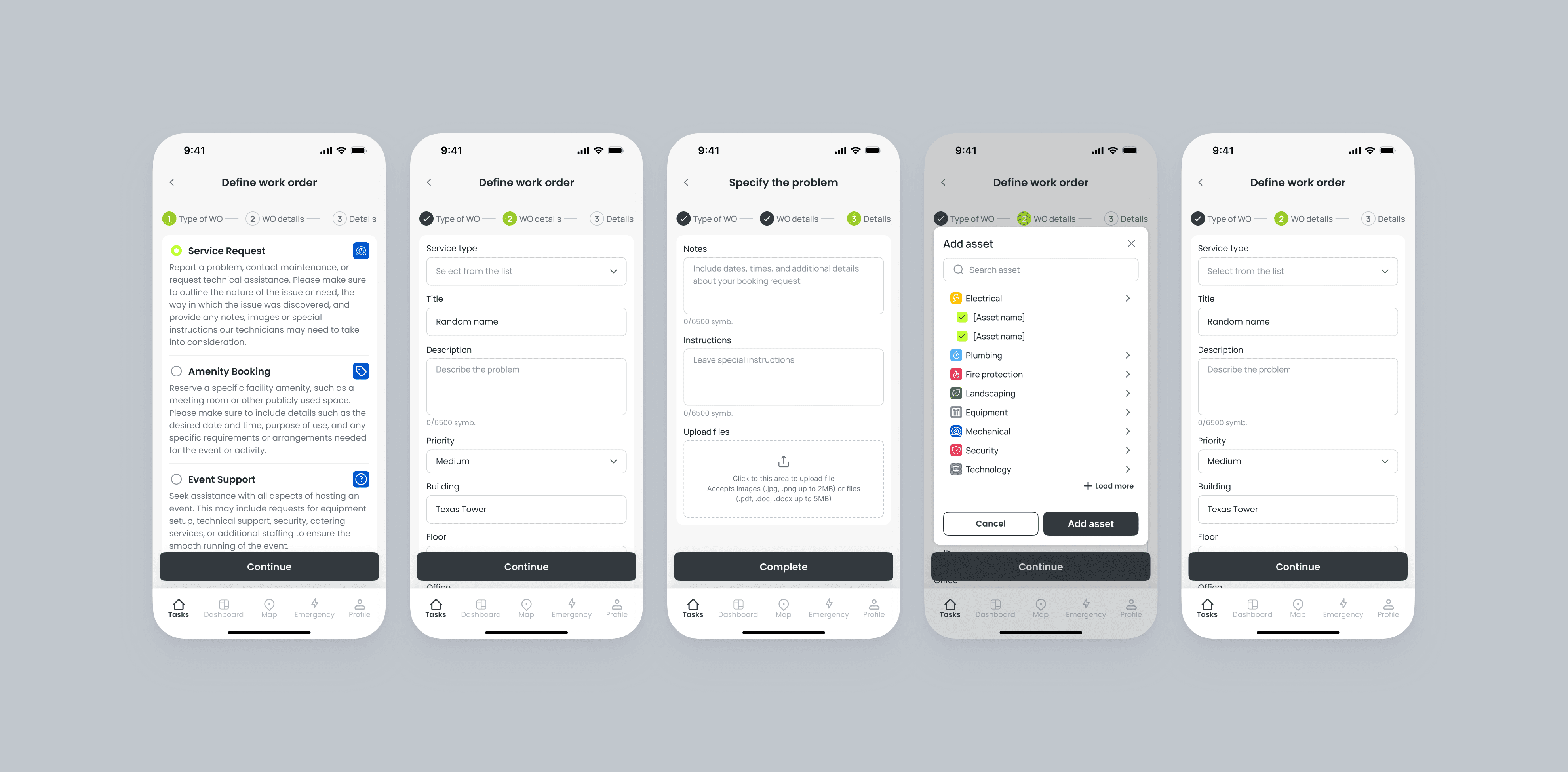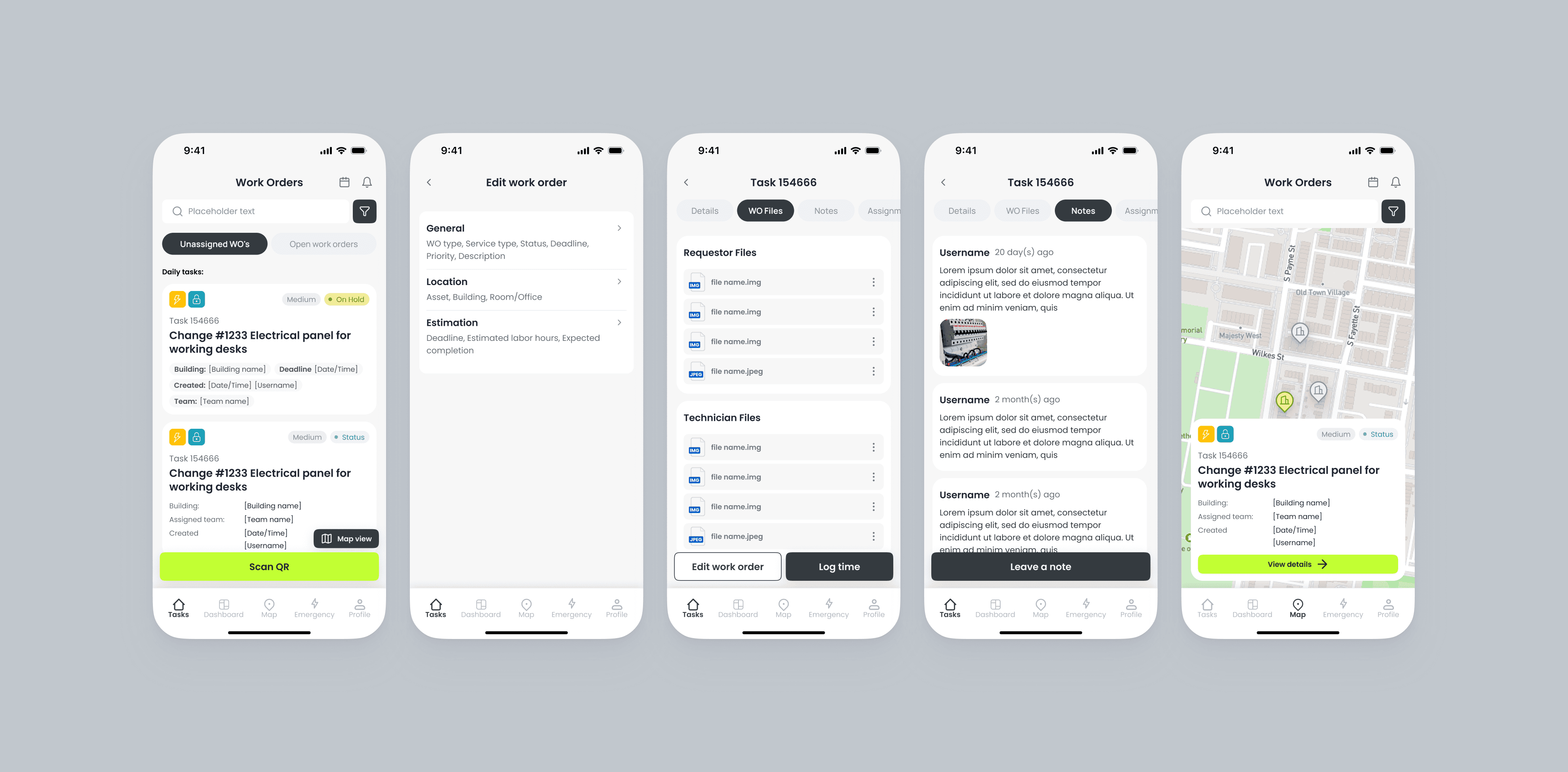 Complex Data Visualization. Screens had to display work orders, asset details, timelines, documents without overwhelming the user