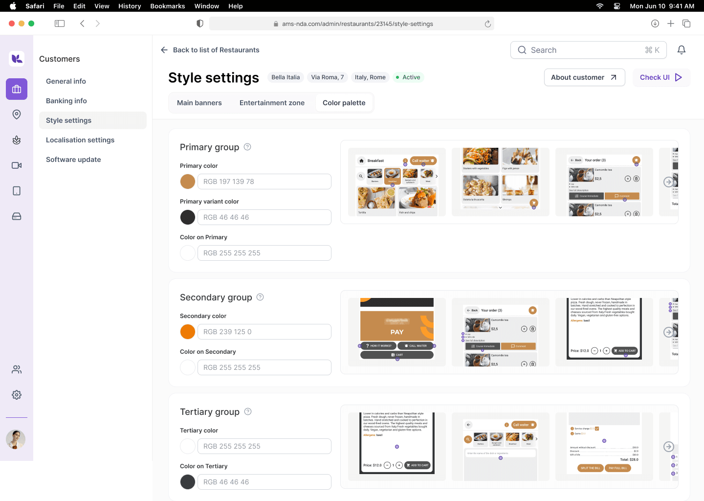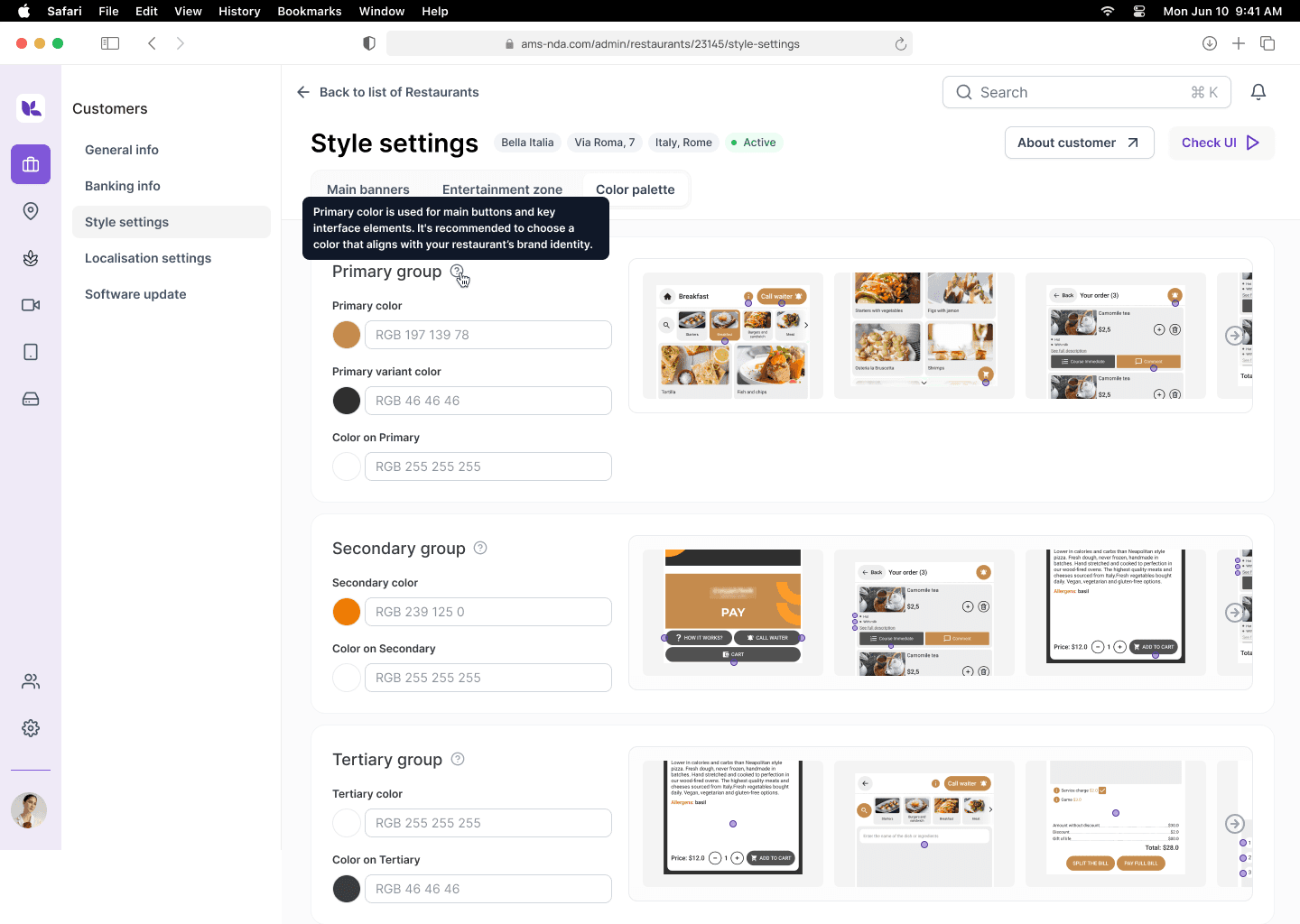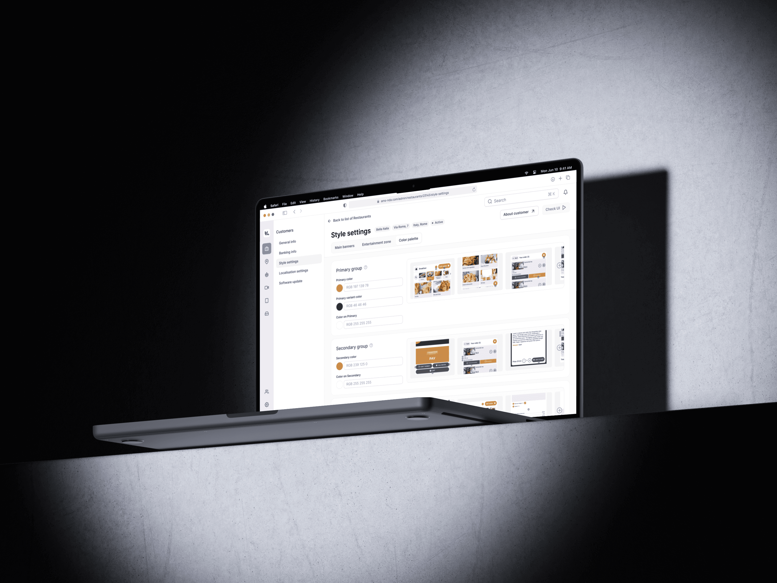 The product is an admin panel for managing restaurant soft&hardware, which is used by B2B clients (managers of restaurants, coffee shops), as well as employees of the company itself.